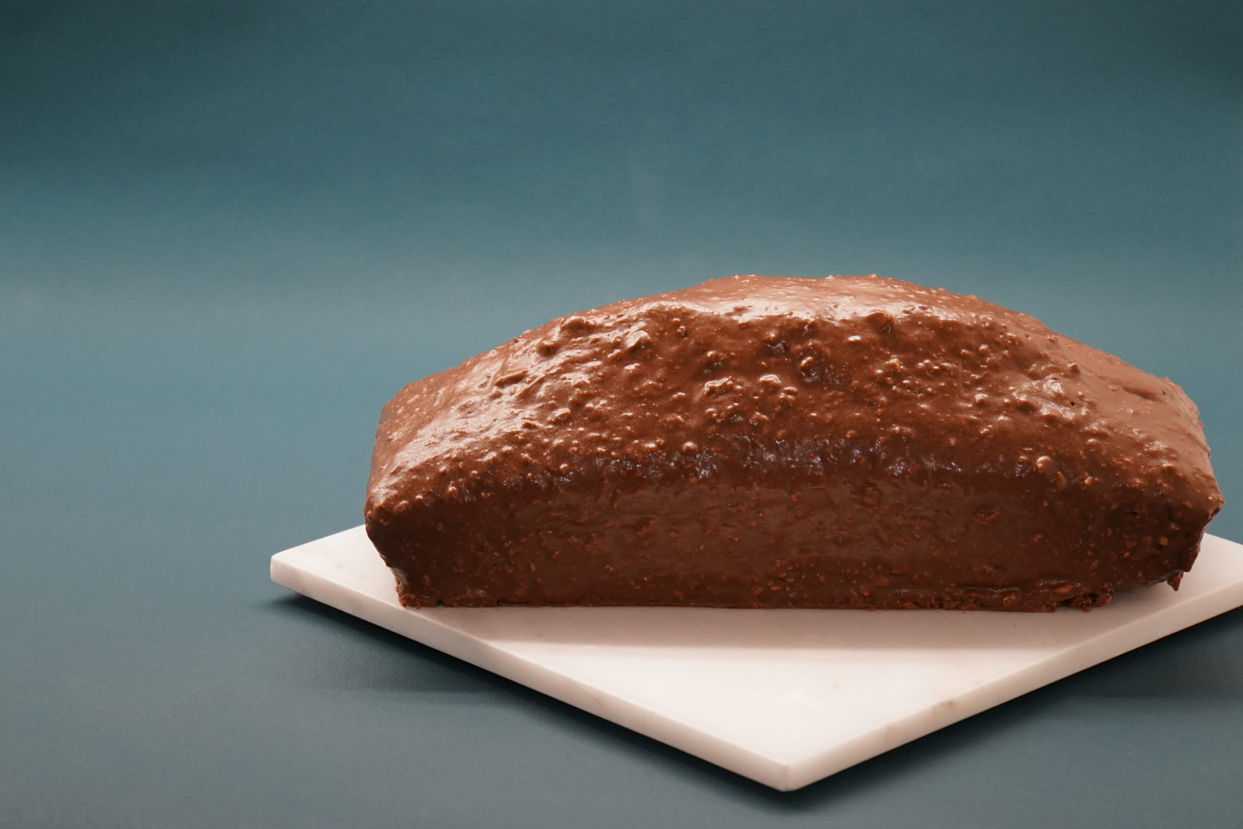 - Étaler le mélange sur une plaque de cuisson recouverte de papier sulfurisé, découper un rectangle de la taille de votre moule à cake.